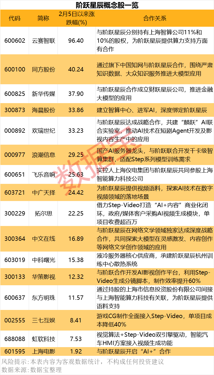 阶跃星辰概念股出炉