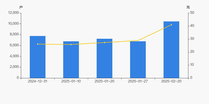 2024年12月31日至今,公司股东户数显著增长,区间涨幅为34.61%。2024年12月31日至2025年2月20日区间股价上涨57.02%。