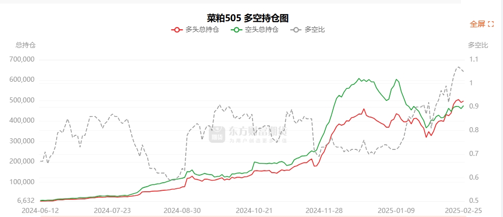 总体而言,菜粕505合约今日增仓下行,多空持仓排名前20席中,多空双方均呈进场态势,多头进场意愿弱于空头。