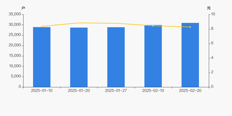 截至2025年2月20日,公司最新总股本为10.72亿股,其中流通股本为9.74亿股。户均持有流通股数量由上期的3.25万股下降至3.15万股,户均流通市值26.07万元。