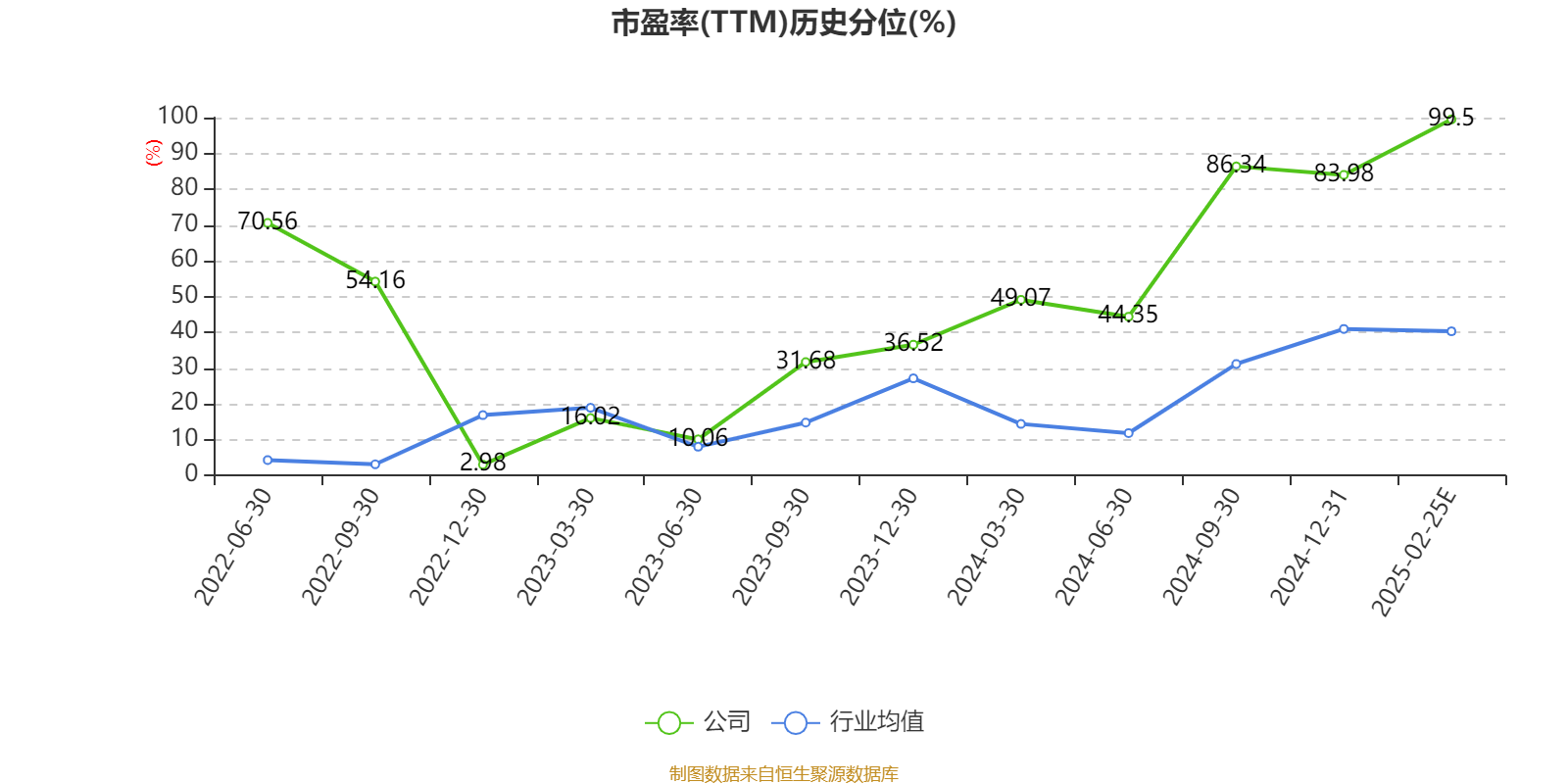 市盈率、市净率为负时,不显示当期分位数,会导致折线图中断。
