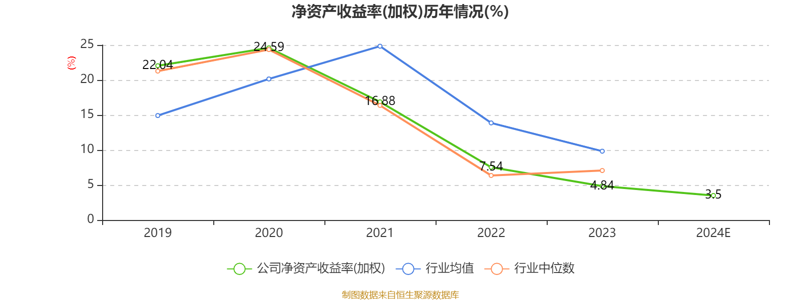数据显示,2024年公司加权平均净资产收益率为3.5%,较上年同期下降1.34个百分点。