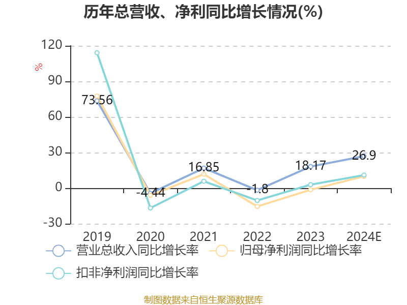 中证智能财讯松井股份(688157)2月25日晚间披露2024年业绩快报,公司实现营业收入7.48亿元,同比增长26.9%;归母净利润8914.4万元,同比增长9.91%;扣非净利润8179.91万元,同比增长10.96%;基本每股收益0.8元,加权平均净资产收益率为6.72%。以2月25日收盘价计算,松井股份目前市盈率(TTM)约为54.25倍,市净率(LF)约3.7倍,市销率(TTM)约6.89倍。