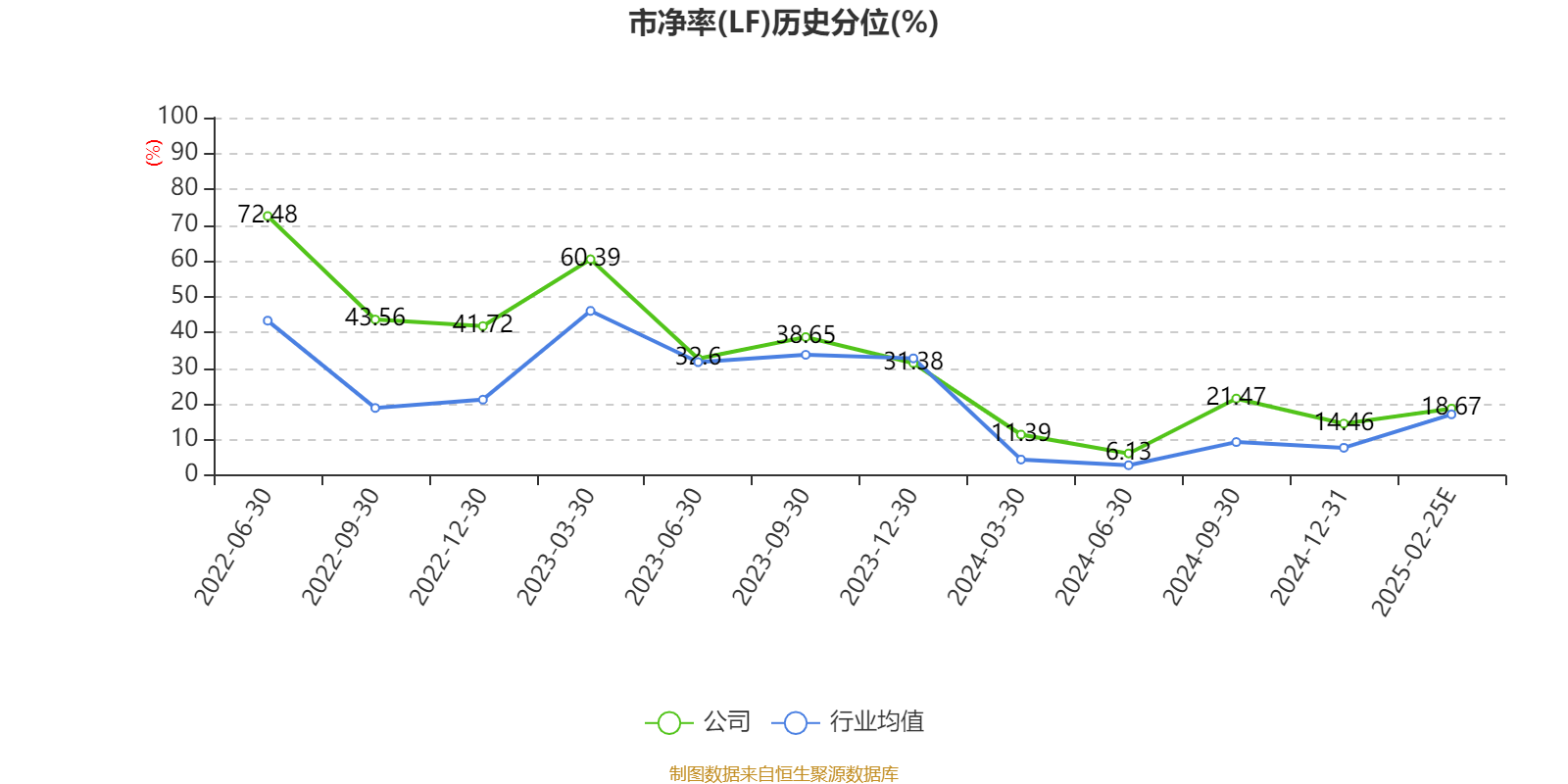 市盈率、市净率为负时,不显示当期分位数,会导致折线图中断。