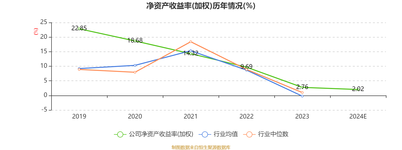 数据显示,2024年公司加权平均净资产收益率为2.02%,较上年同期下降0.74个百分点。