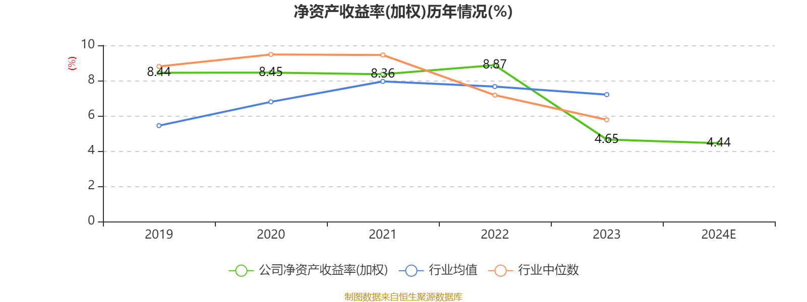 数据显示,2024年公司加权平均净资产收益率为4.44%,较上年同期下降0.21个百分点。