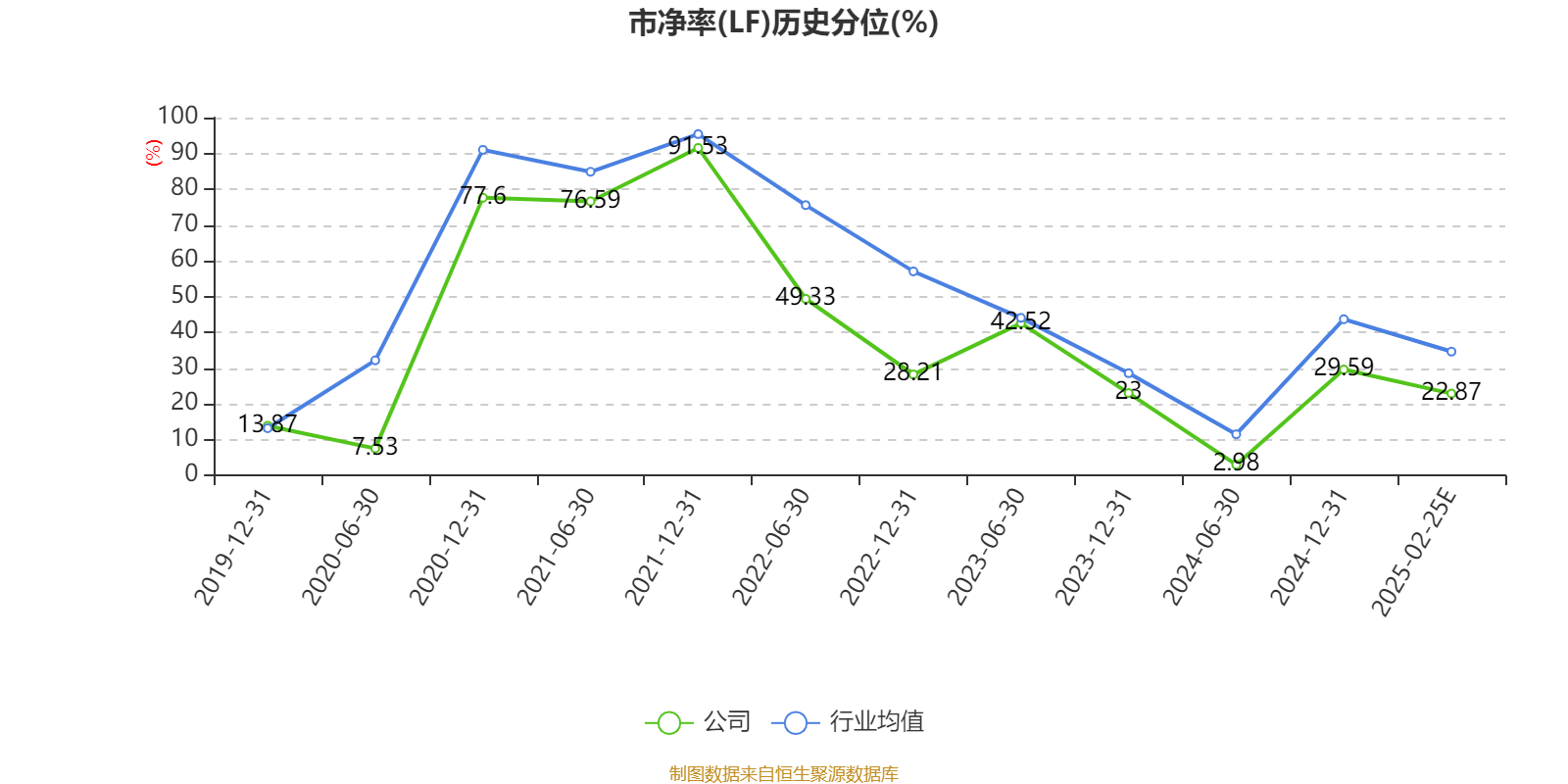 市盈率、市净率为负时,不显示当期分位数,会导致折线图中断。