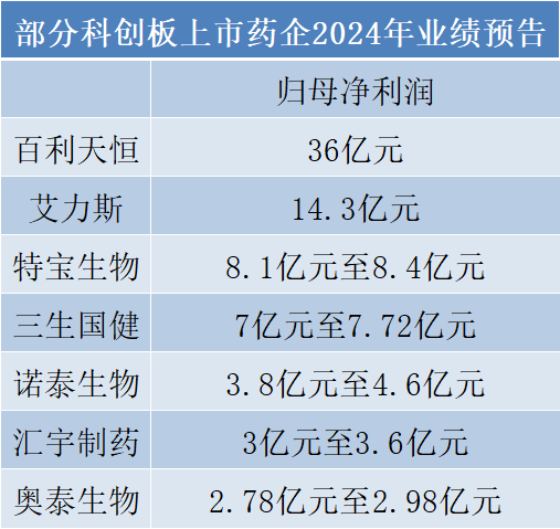 A股科创板上市医药企业中,也有多家预告2024年盈利。其中百利天恒以36亿元拿下归母净利润排行榜第一的位置,主要归功于2023年底同百时美施贵宝(BMS)就核心产品EGFR×HER3的双抗ADC BL-B01D1达成的合作。