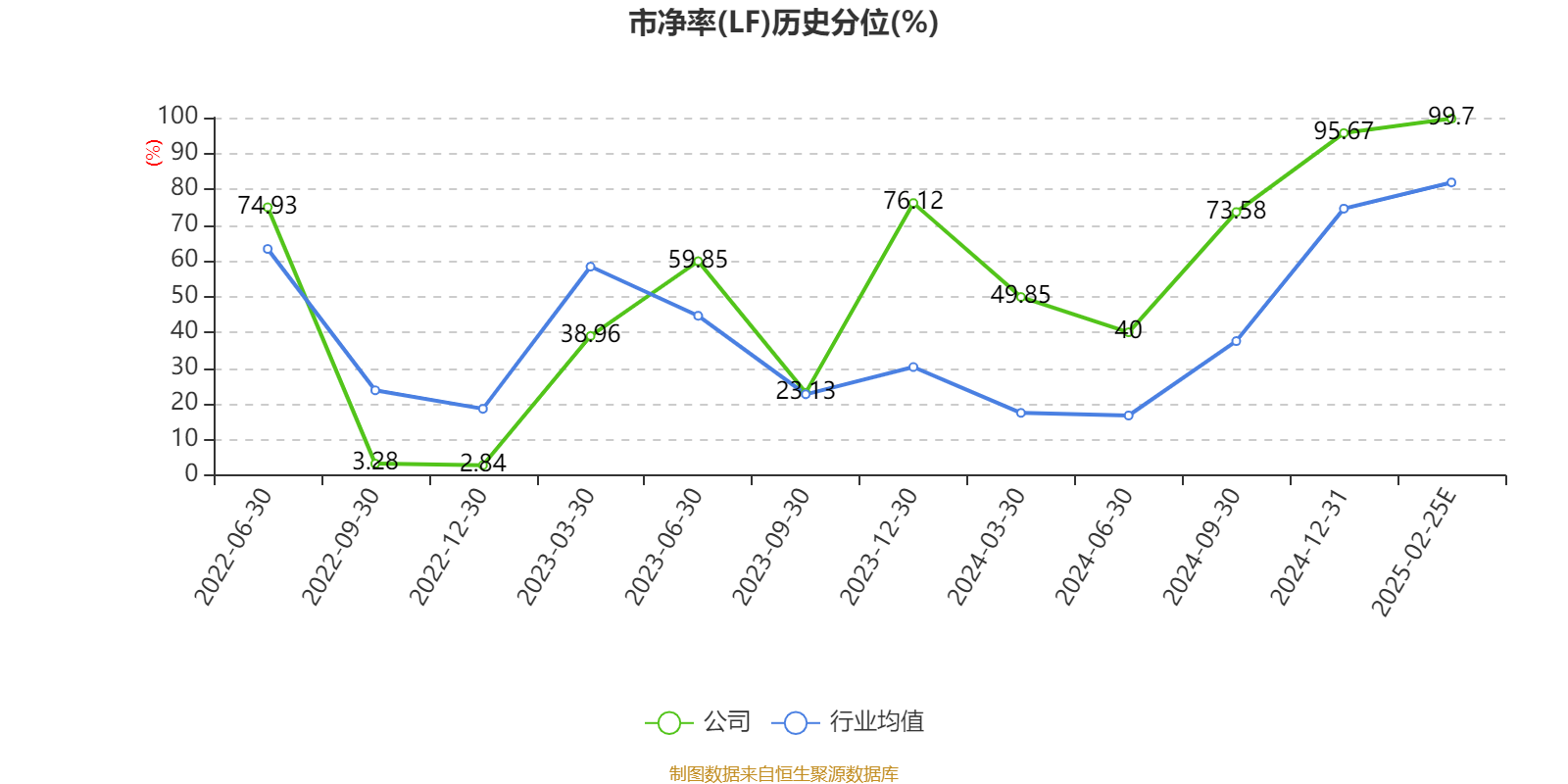 市盈率、市净率为负时,不显示当期分位数,会导致折线图中断。