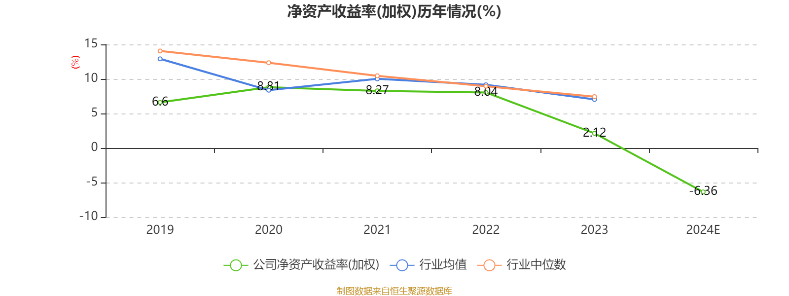 数据显示,2024年公司加权平均净资产收益率为-6.36%,较上年同期下降8.48个百分点。