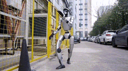 在完成旋风踢这一复合动作时,G1从旋转身体、抬腿、横踢到站定,颇为丝滑。
