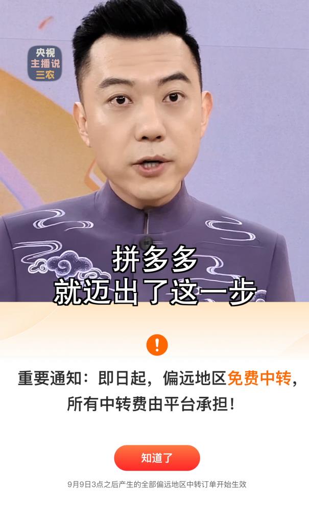▲《央视主播说三农》栏目解读中央一号文件时,提及拼多多电商西进。
