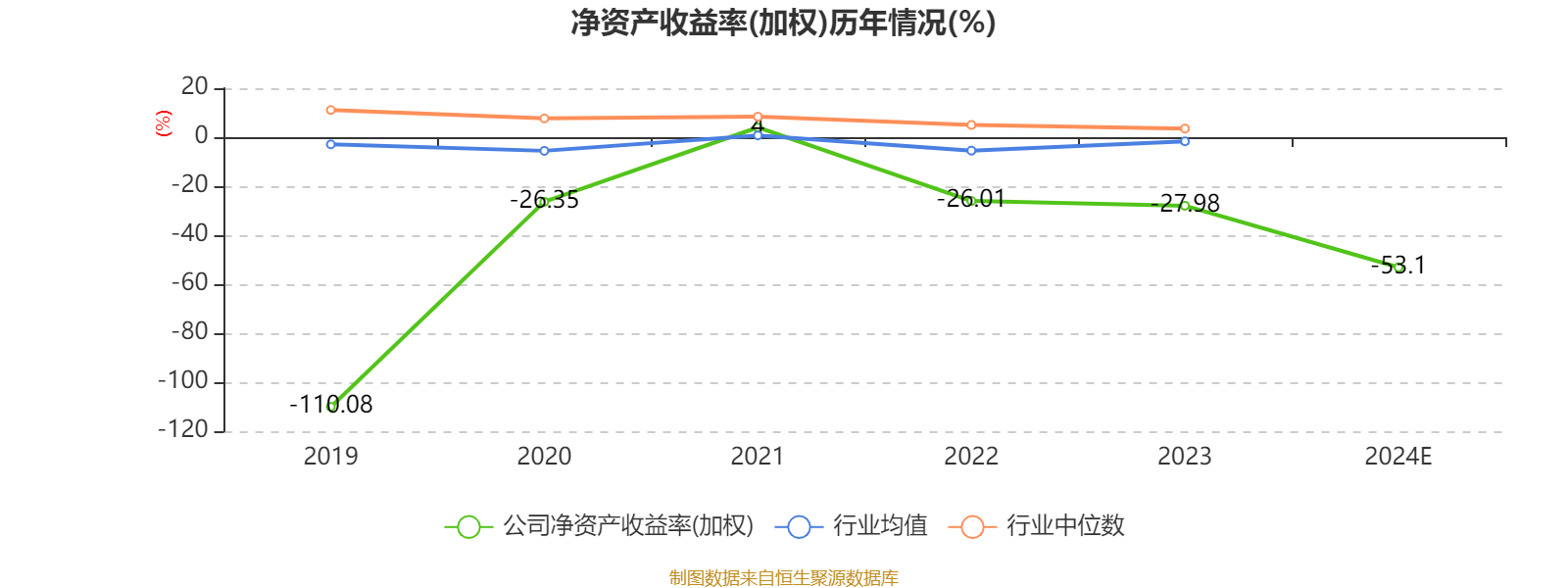 数据显示,2024年公司加权平均净资产收益率为-53.1%,较上年同期下降25.12个百分点。