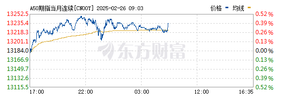 上证报中国证券网讯 2月26日,富时中国A50指数期货主力合约在上一个交易日夜盘收涨0.29%的基础上高开。截至9时03分,该指数涨0.37%。