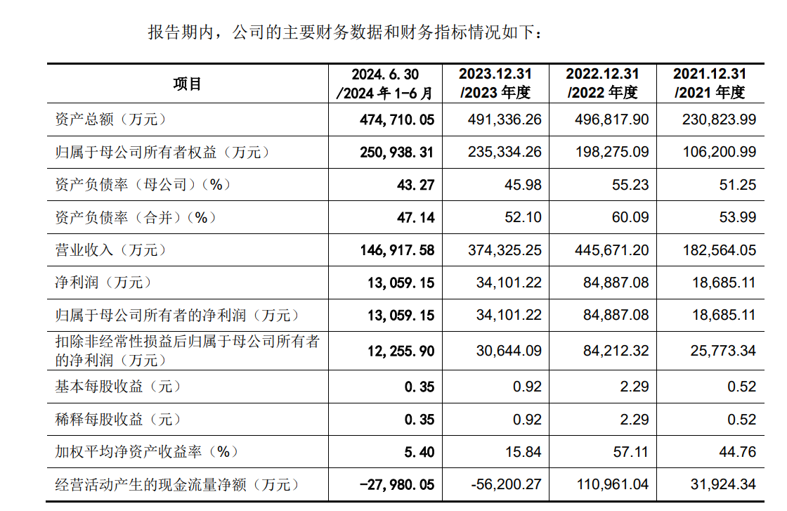 据招股书(注册稿),首航新能提供了经上会会计事务所审核的盈利预测报告。公司预计,2024年营收为27.13亿元,同比下降27.53%;预测当年归属母公司的净利润为2.55亿元,同比下降25.25%。以营收和净利润计算,首航新能双双出现较大的负增长。