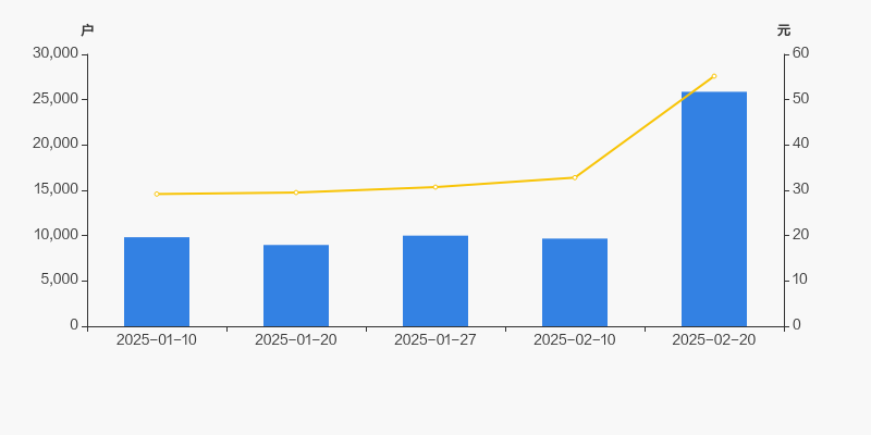 2025年1月10日至今,公司股东户数成倍增长,区间涨幅达163.37%。2025年1月10日至2025年2月20日区间股价上涨89.17%。
