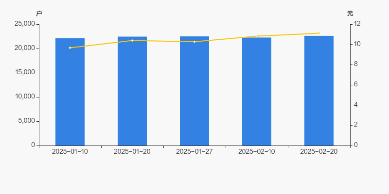 2025年1月10日至今,公司股东户数有所增长,区间涨幅为2.15%。2025年1月10日至2025年2月20日区间股价上涨14.89%。