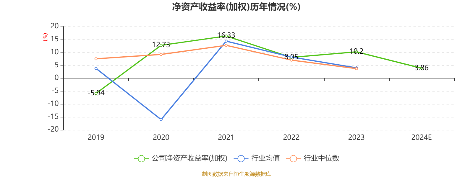 数据显示,2024年公司加权平均净资产收益率为3.86%,较上年同期下降6.34个百分点。