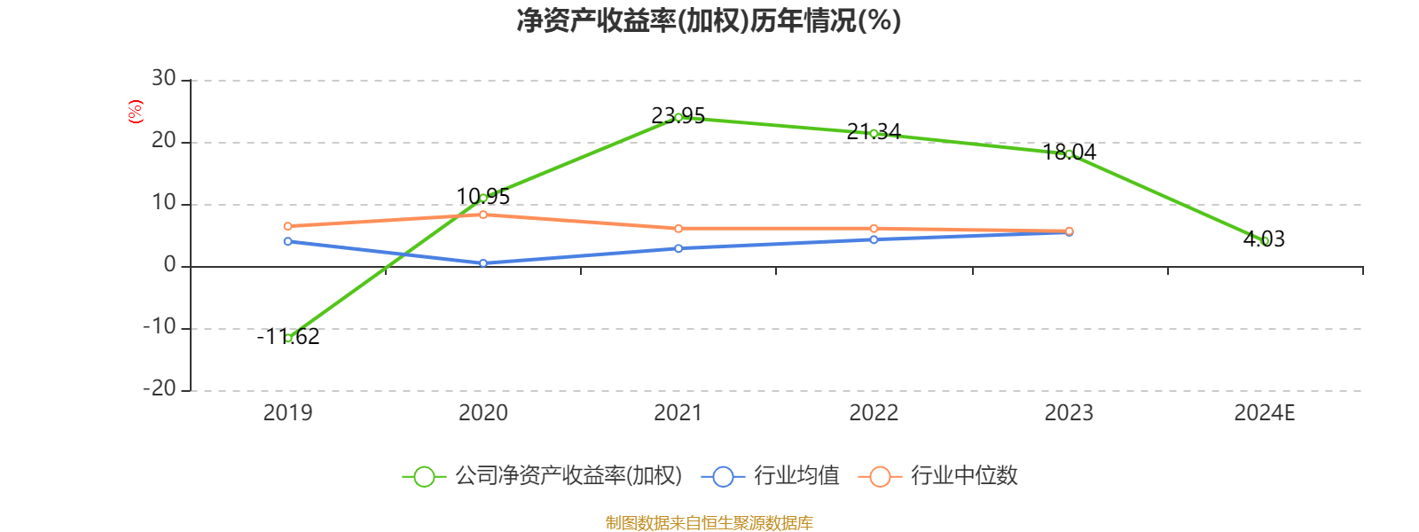 数据显示,2024年公司加权平均净资产收益率为4.03%,较上年同期下降14.01个百分点。