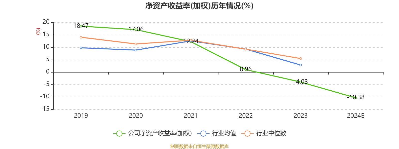 数据显示,2024年公司加权平均净资产收益率为-10.38%,较上年同期下降6.35个百分点。