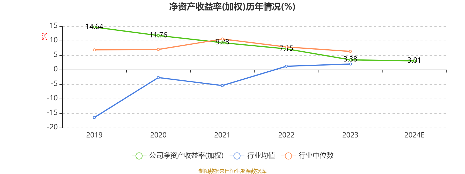 数据显示,2024年公司加权平均净资产收益率为3.01%,较上年同期下降0.37个百分点。