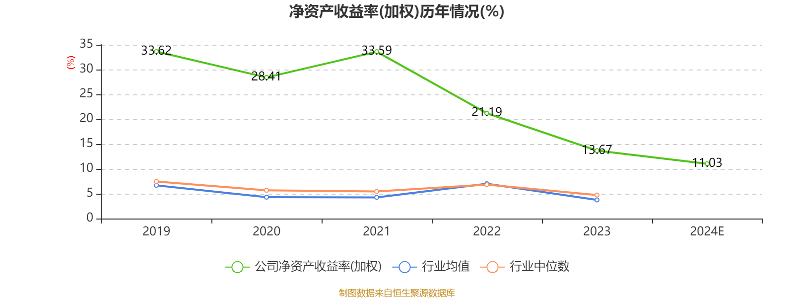 数据显示,2024年公司加权平均净资产收益率为11.03%,较上年同期下降2.64个百分点。