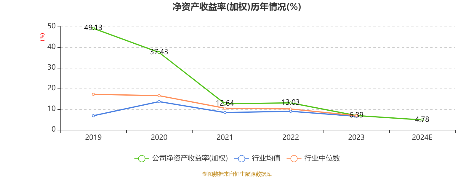 数据显示,2024年公司加权平均净资产收益率为4.78%,较上年同期下降2.11个百分点。