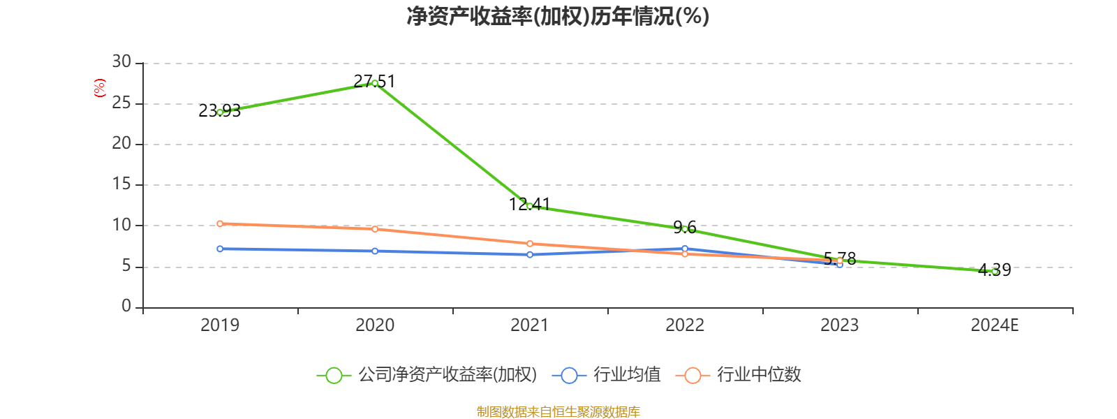 数据显示,2024年公司加权平均净资产收益率为4.39%,较上年同期下降1.39个百分点。