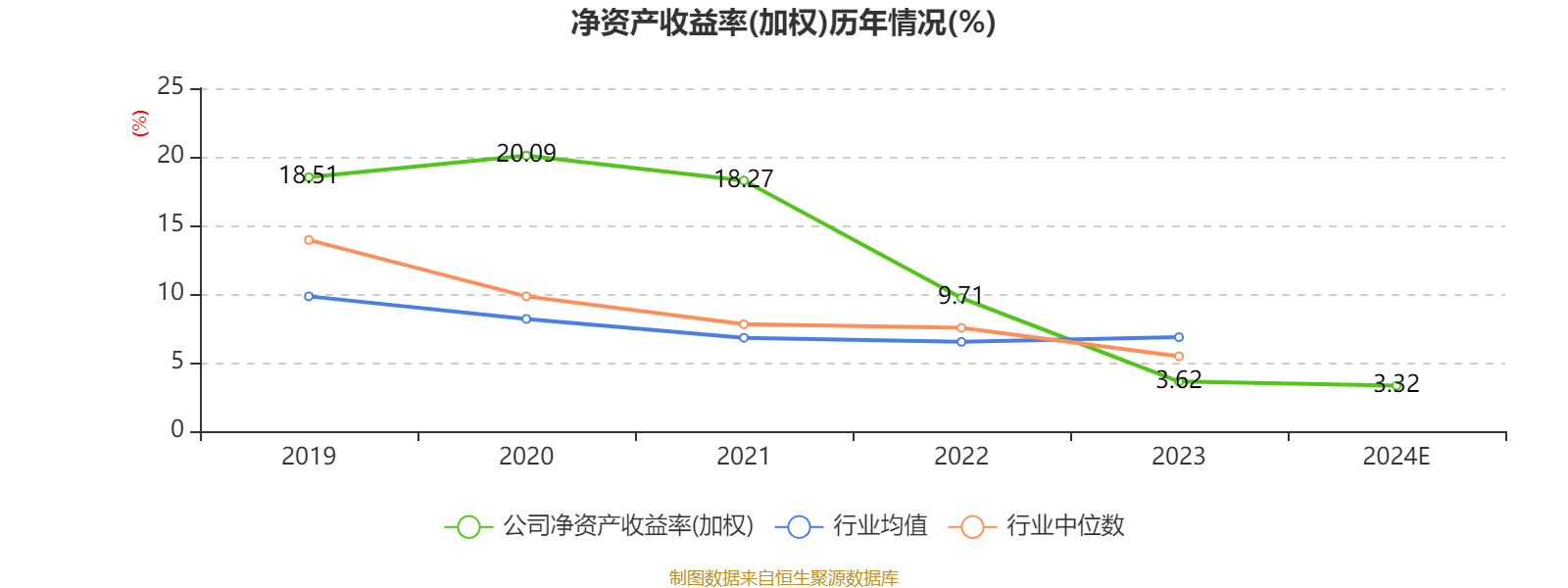 数据显示,2024年公司加权平均净资产收益率为3.32%,较上年同期下降0.3个百分点。
