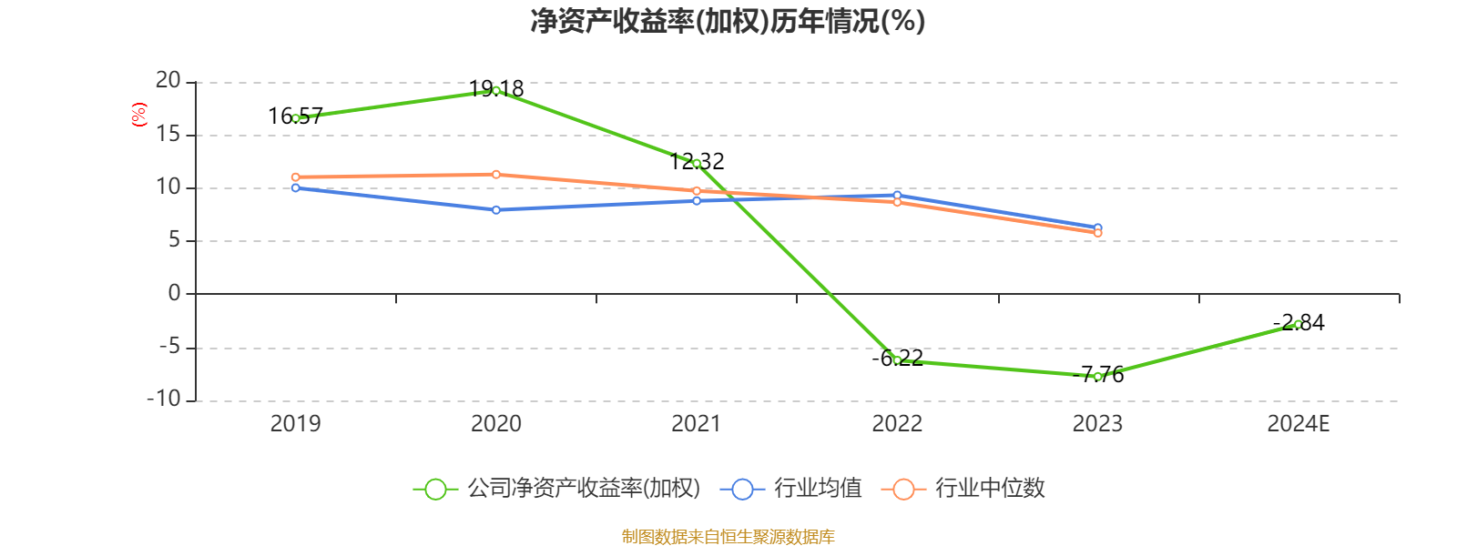 数据显示,2024年公司加权平均净资产收益率为-2.84%,较上年同期上升4.92个百分点。
