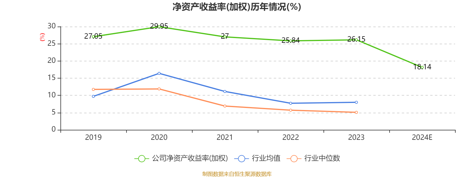 数据显示,2024年公司加权平均净资产收益率为18.14%,较上年同期下降8.01个百分点。