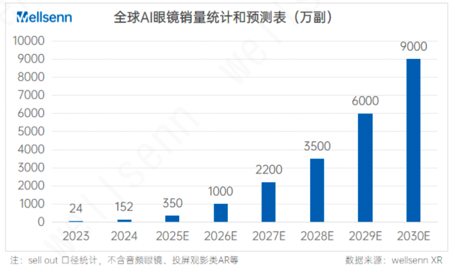 (Wellsenn对全球AI眼镜销量趋势预测)