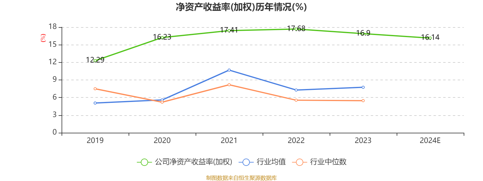 数据显示,2024年公司加权平均净资产收益率为16.14%,较上年同期下降0.76个百分点。