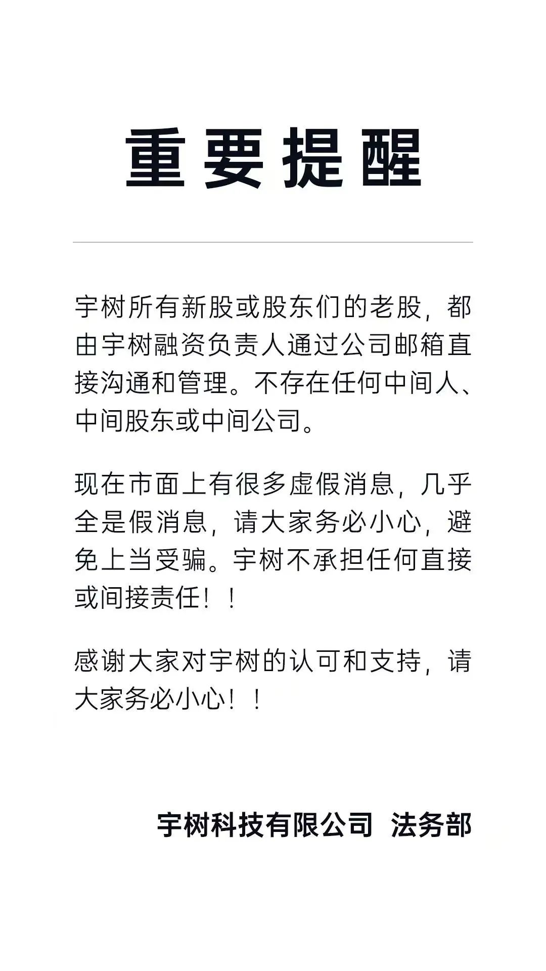 近日不断有消息传出宇树科技的老股正在转让,500万元起投,认购者40%都来自海外等。2月26日,宇树科技官微发布提醒:宇树所有新股或股东们的老股,都由宇树融资负责人通过公司邮箱直接沟通和管理。不存在任何中间人、中间股东或中间公司。现在市面上有很多虚假消息,几乎全是假消息。