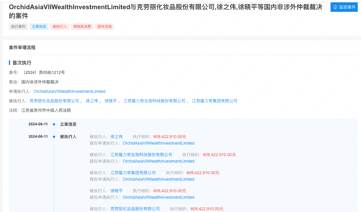 据国内媒体报道,2023年苏州市中级人民法院已受理隆力奇非法集资案,涉案金额超8亿元,董事长徐之伟等高管被取保候审。
