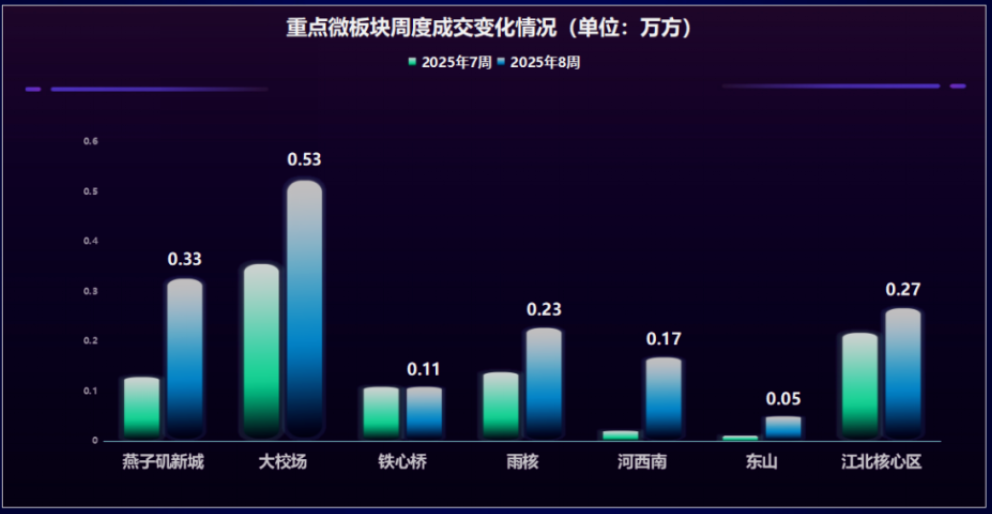 克而瑞南京机构表示,近期南京楼市持续回暖,主城项目表现更佳,新房成交量同比、环比均呈现上行走势,成交价格波动稳定。从微观板块来看,除了铁心桥外,南京各重点板块新房签约量环比均呈现一定涨幅。不过,市场整体规模仍处于相对低位,从项目案场监测情况来看,南京市场情绪有所复苏,幅度仍有所受限。