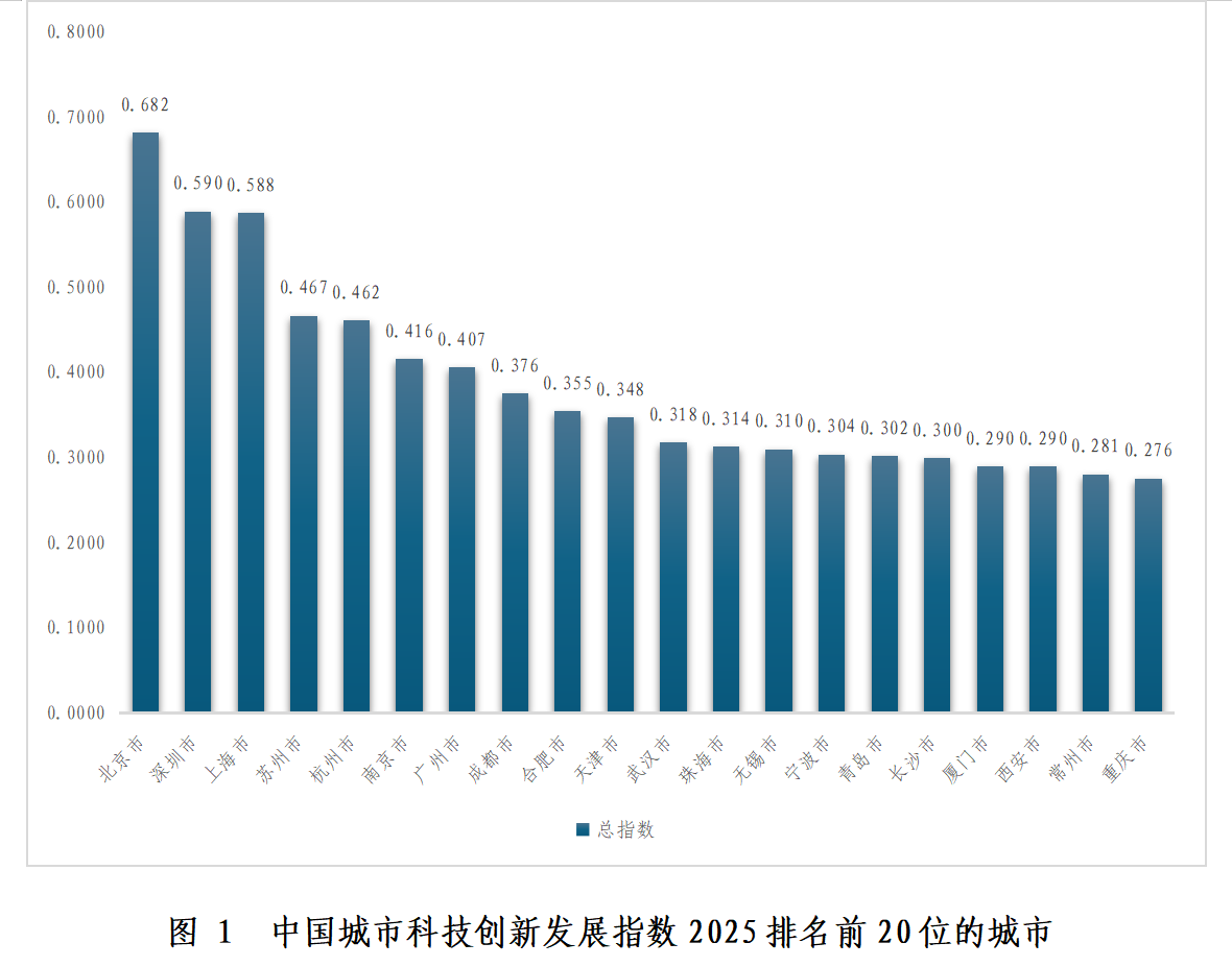 近日,首都科技发展战略研究院课题组发布《中国城市科技创新发展报告(2025)》。报告显示,2024年度中国城市科技创新发展指数排名前20位的城市依次是:北京市、深圳市、上海市、苏州市、杭州市、南京市、广州市、成都市、合肥市、天津市、武汉市、珠海市、无锡市、宁波市、青岛市、长沙市、厦门市、西安市、常州市、重庆市。
