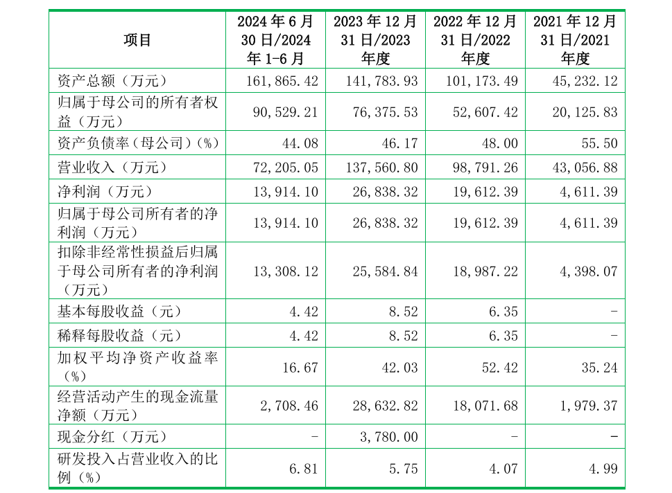 业绩方面,报告期内(2021年—2023年、2024年上半年),优优绿能分别实现营收4.31亿元、9.88亿元、13.76亿元、7.22亿元;净利润4611.39万元、1.96亿元、2.68亿元、1.39亿元。