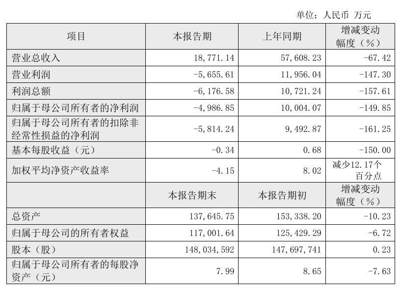 2月27日,复洁环保(688335)发布公告,2024年度业绩快报显示,公司营业总收入为1.88亿元,较上年同期下降67.42%。归母净利润亏损4987万元,较上年同期下降149.85%。具体数据如下表:
