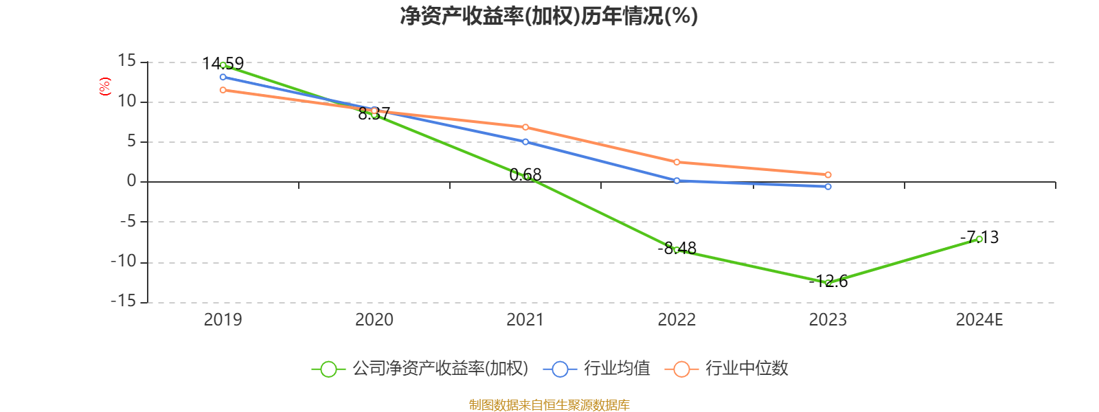 数据显示,2024年公司加权平均净资产收益率为-7.13%,较上年同期上升5.47个百分点。