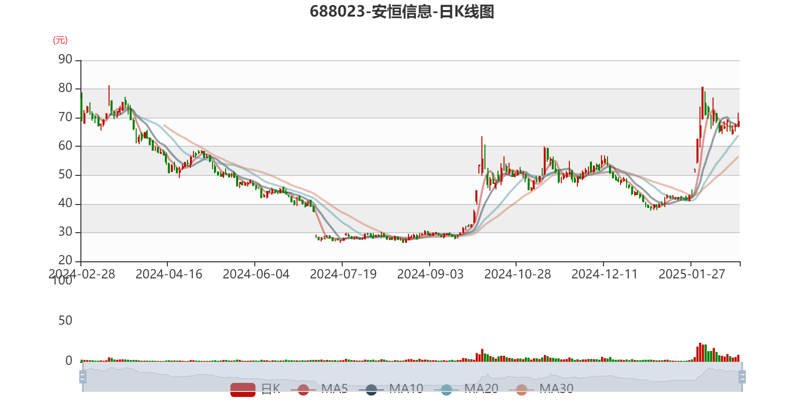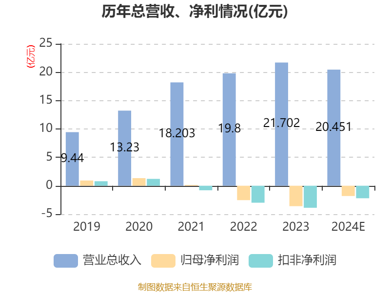 中证智能财讯安恒信息(688023)2月27日晚间披露2024年业绩快报,公司实现营业收入20.45亿元,同比下降5.76%;归母净利润亏损1.81亿元,上年同期亏损3.6亿元;扣非净利润亏损2.2亿元,上年同期亏损3.88亿元;基本每股收益-1.76元,加权平均净资产收益率为-7.13%。以最新收盘价计算,市净率(LF)约2.99倍,市销率(TTM)约3.33倍。
