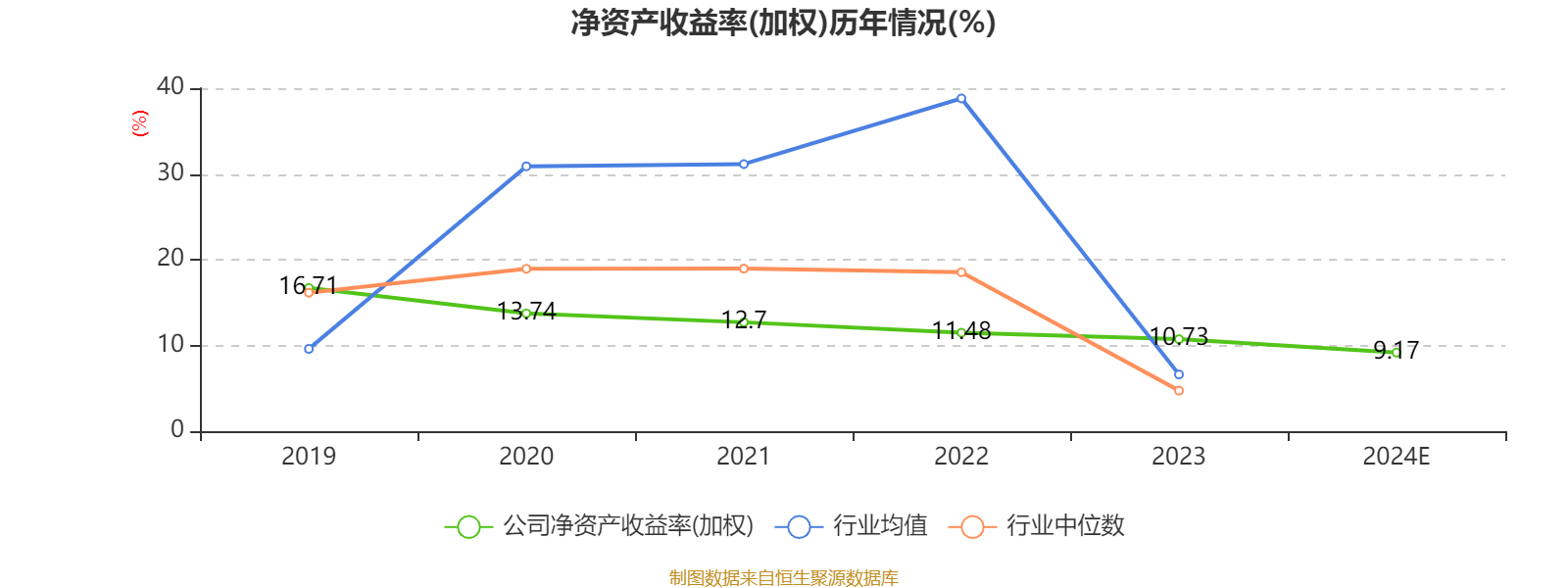 数据显示,2024年公司加权平均净资产收益率为9.17%,较上年同期下降1.56个百分点。