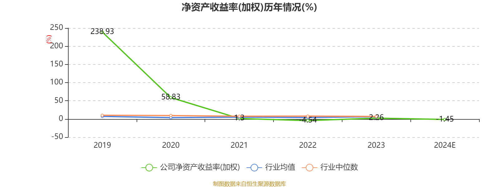 数据显示,2024年公司加权平均净资产收益率为-1.45%,较上年同期下降3.71个百分点。