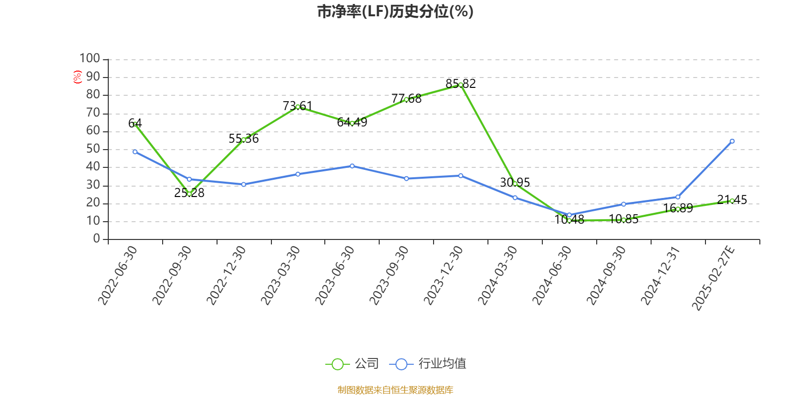 市盈率、市净率为负时,不显示当期分位数,会导致折线图中断。