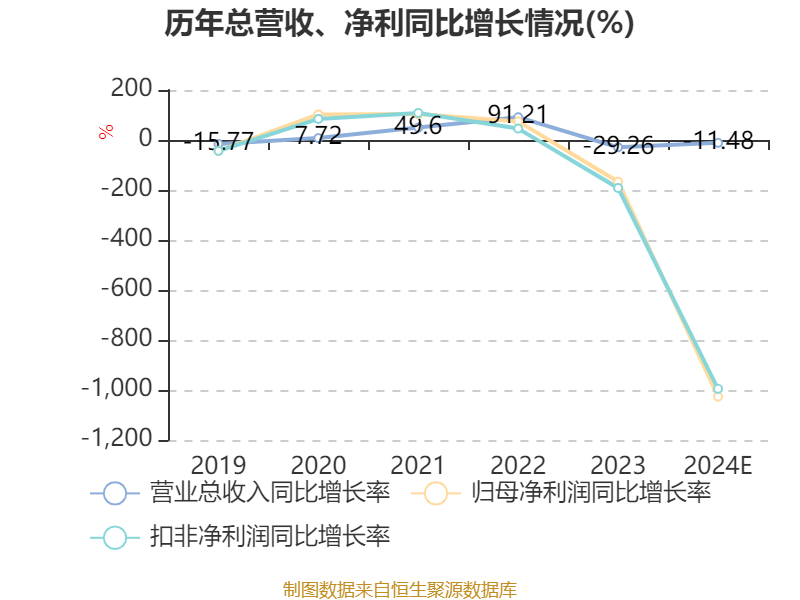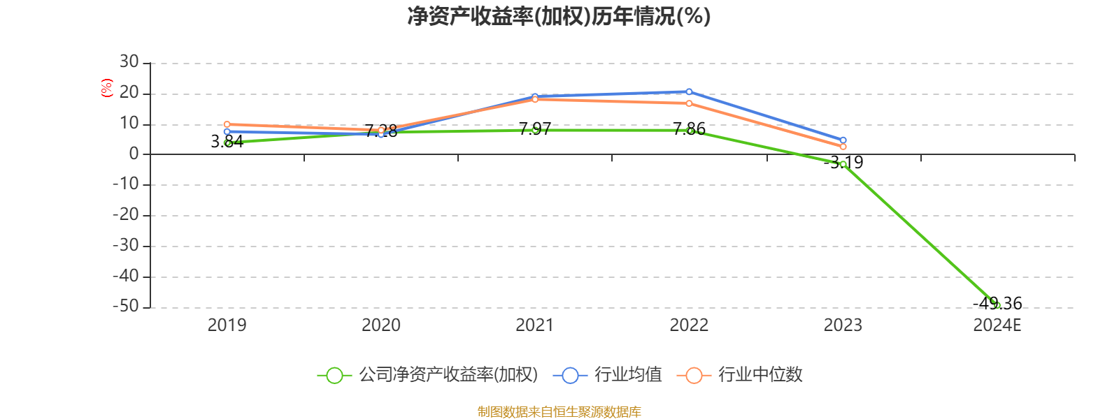 数据显示,2024年公司加权平均净资产收益率为-49.36%,较上年同期下降46.17个百分点。