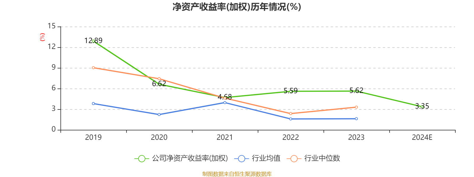 数据显示,2024年公司加权平均净资产收益率为3.35%,较上年同期下降2.27个百分点。