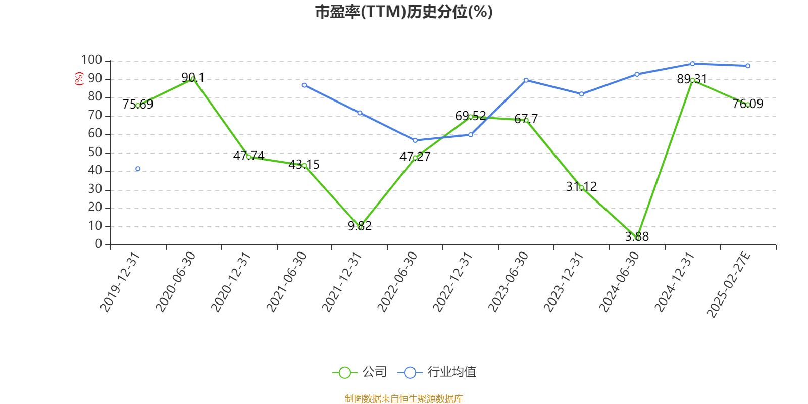 市盈率、市净率为负时,不显示当期分位数,会导致折线图中断。