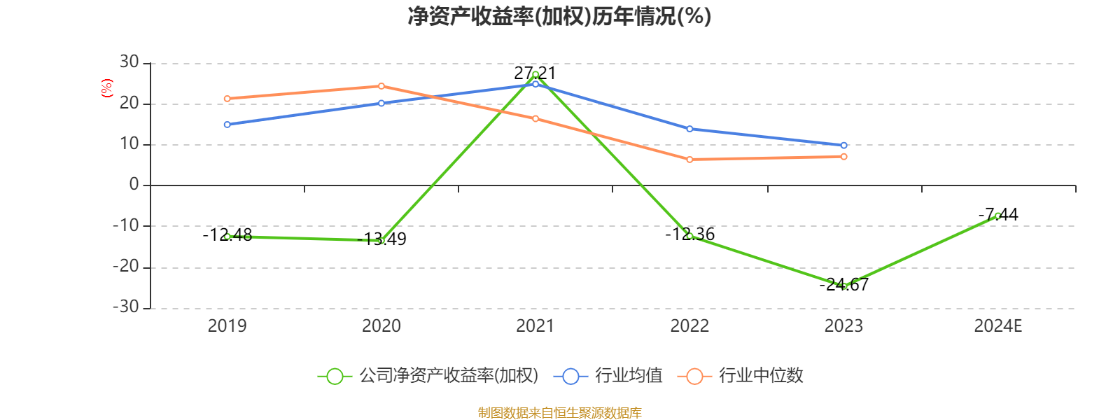 数据显示,2024年公司加权平均净资产收益率为-7.44%,较上年同期上升17.23个百分点。