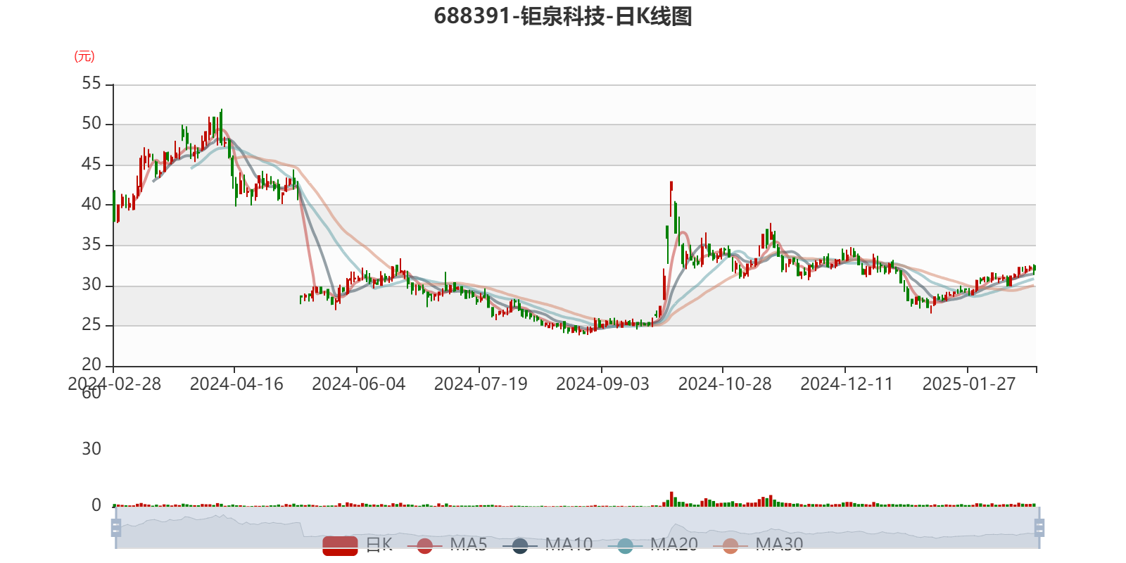 中证智能财讯钜泉科技(688391)2月27日晚间披露2024年业绩快报,公司实现营业收入5.92亿元,同比下降1.85%;归母净利润9491.33万元,同比下降27.79%;扣非净利润5386.64万元,同比下降40.54%;基本每股收益0.81元,加权平均净资产收益率为4.91%。以2月27日收盘价计算,钜泉科技目前市盈率(TTM)约为38.57倍,市净率(LF)约1.98倍,市销率(TTM)约6.36倍。
