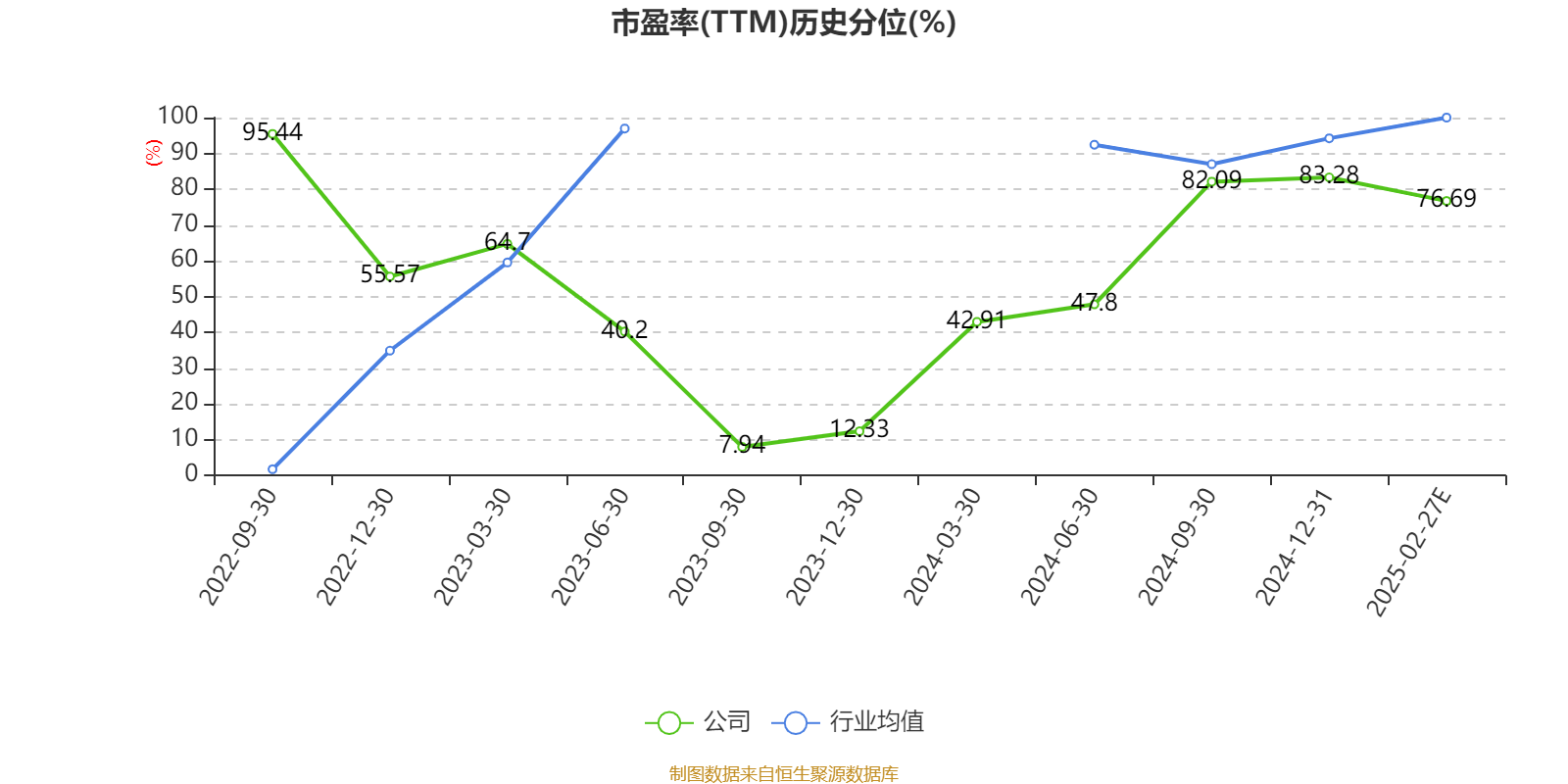 市盈率、市净率为负时,不显示当期分位数,会导致折线图中断。